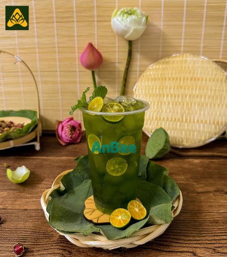 Trà tắc Thái xanh được pha từ trà xanh nguyên lá, tắc tươi mọng nước và lá dứa thơm, mang đến hương vị chua nhẹ, thanh mát, giúp giải nhiệt.